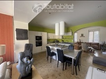 L'intérieur de cette demeure propose des volumes généreux : un salon spacieux et lumineux avec insert, une cuisine entièrement équipée et moderne, ainsi que cinq grandes chambres réparties sur deux étages, dont une suite parentale avec salle de bain privative.