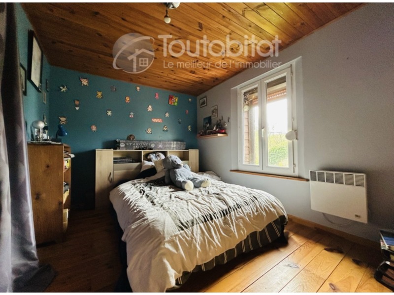 À l'étage, vous trouverez quatre chambres supplémentaires ainsi qu’une salle de douche, offrant un espace de vie généreux et fonctionnel.