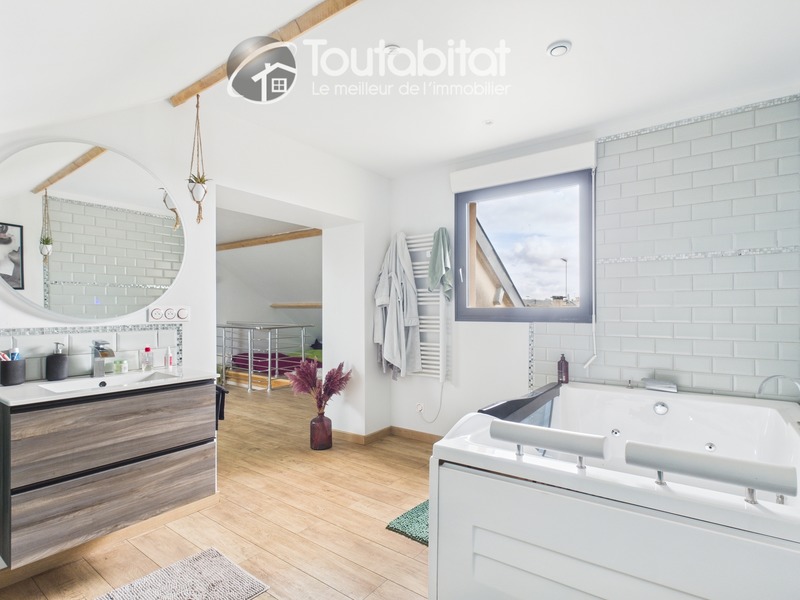 Le 2ᵉ étage est entièrement dédié à une superbe suite parentale, composée d’un espace nuit de plus de 25 m² et d’une salle de bain avec balnéo, créant un véritable espace privé.