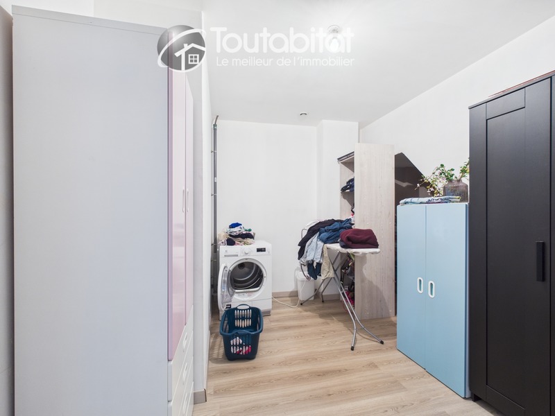 Au 1er étage, un long couloir dessert trois chambres, dont deux équipées de dressings, ainsi qu’une salle de bain, une buanderie et un WC indépendant.