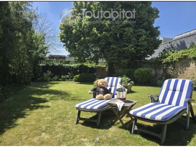 La maison dispose également de deux garages, d’une cave, d’un sous-sol en pierre, d’un chauffage central au gaz avec chaudière récente (2022), de fenêtres en triple vitrage côté rue et double vitrage côté jardin, ainsi que d’un système de VMC.
