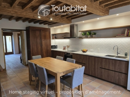 Dès l’entrée, vous serez séduit par le charme authentique de cette maison rénovée avec goût. La cuisine équipée, avec ses poutres apparentes et son sol en grès, donne le ton : allier le cachet de l’ancien à des matériaux de qualité. Elle s’ouvre sur un salon chaleureux, orné de murs en pierre, d’une cheminée en pierre tubée et fonctionnelle, ainsi que d’une baie vitrée donnant accès au jardin. Le rez-de-chaussée comprend également un WC séparé et un accès secondaire au jardin.